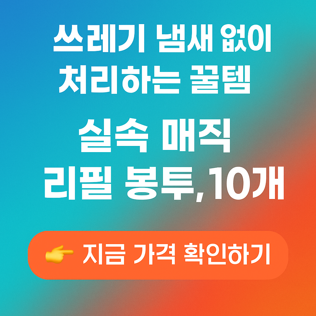 쓰레기 냄새 없이 처리하는 꿀템을 찾는다면 실속 매직 리필 봉투 10개로 냄새·교체 번거로움 모두 줄여보세요.