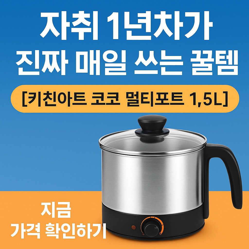 키친아트 코코 멀티포트 1.5L는 자취 1년차의 현실적인 필수템. 빠르고 간편하며 세척까지 쉬운 라면포트입니다.