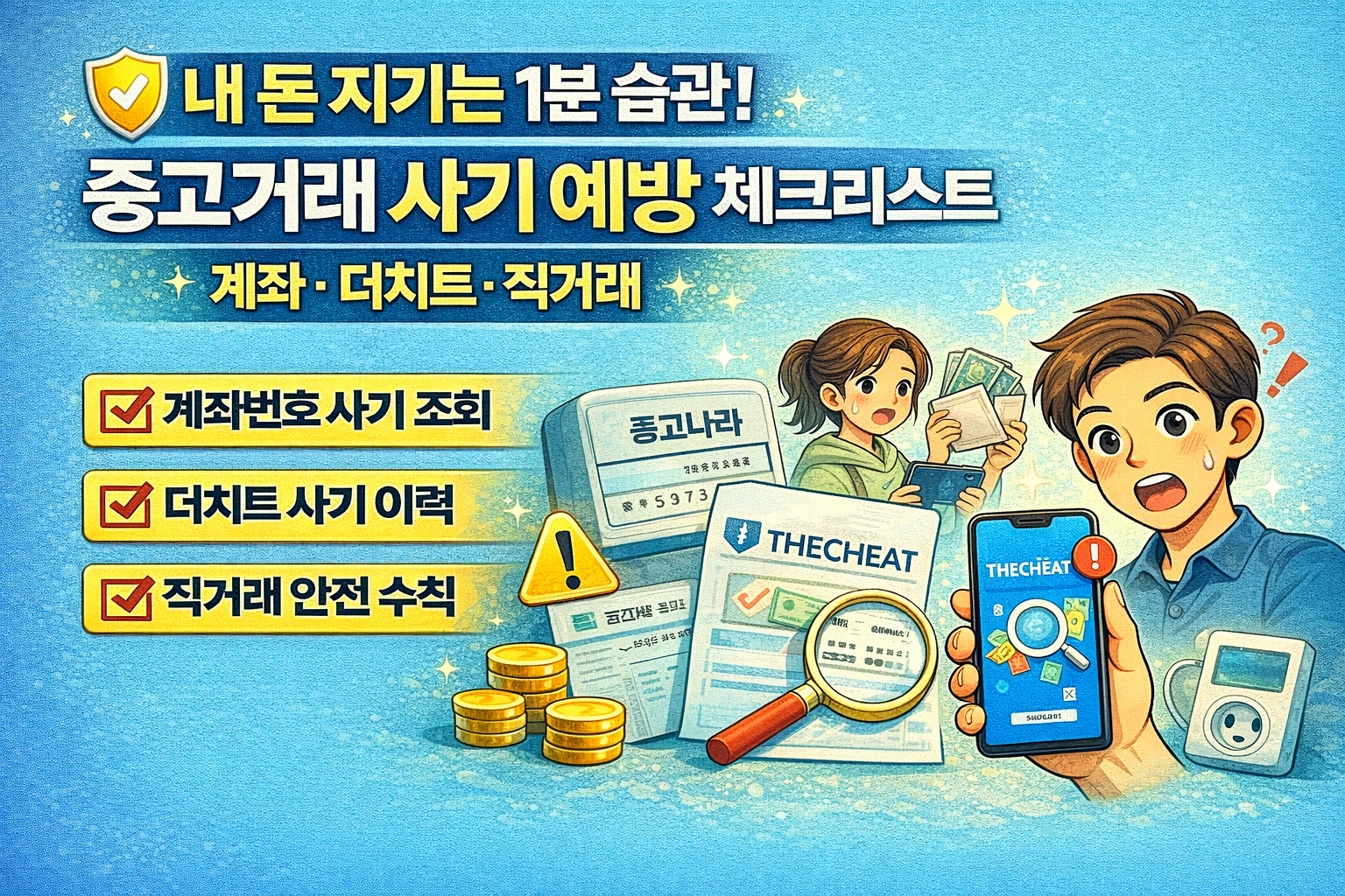 - ✔ 중고거래 사기 예방 체크리스트|계좌·더치트·직거래 확인으로 피해 확률을 99% 낮추세요.